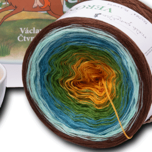 Klubíčko LESNÍ je tvořeno třemi nitkami, které jsou postupně měněny k dosažení volného přechodu modrých a zelených barev.