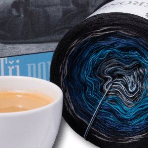Klubíčko MOTÝLÍ MLHOVINA je tvořeno třemi nitkami. Klubíčko není navinuto standartně jako klasické třínitky, barevné kombinace jednotlivých nitek se různě mění tak, aby vytvořily širokou a oku lahodnou kompozici sladěných odstínů temnějších barev. Klubíčkem se vine 5 různých pečlivě barevně sladěných nitek v proměnlivých kombinacích a přechodech připomínající fotografie Motýlí mlhovinu. Patří do kolekce Vesmír. Celým klubíčkem prochází proměnlivý barevný tón černé.