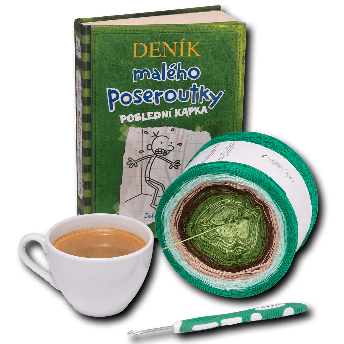Klubíčko VÝLET DO PŘÍRODY je tvořeno třemi nitkami a tvoří jej převážné zemité zelené a hnědé tóny. Evokuje přírodu, výlet třeba do lesa nebo k jezírku.