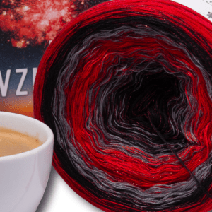 Klubíčko je ručně motáno z tří postupně se měnících nitek k dosažení efektu přecházení barev.