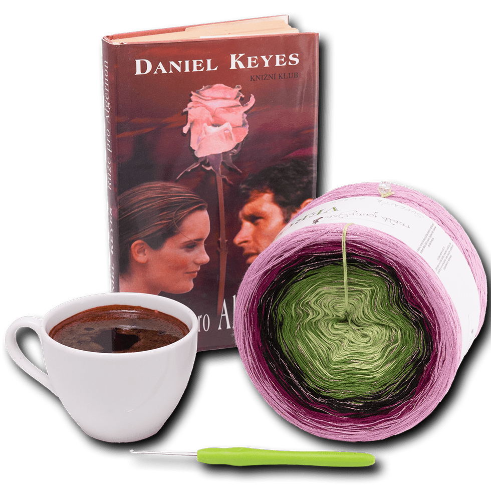 | 3 nitky + lurex | Klubíčko je ručně motáno z tří postupně se měnících nitek k dosažení efektu přecházení barev. Lurex je v barvě Růžová. |